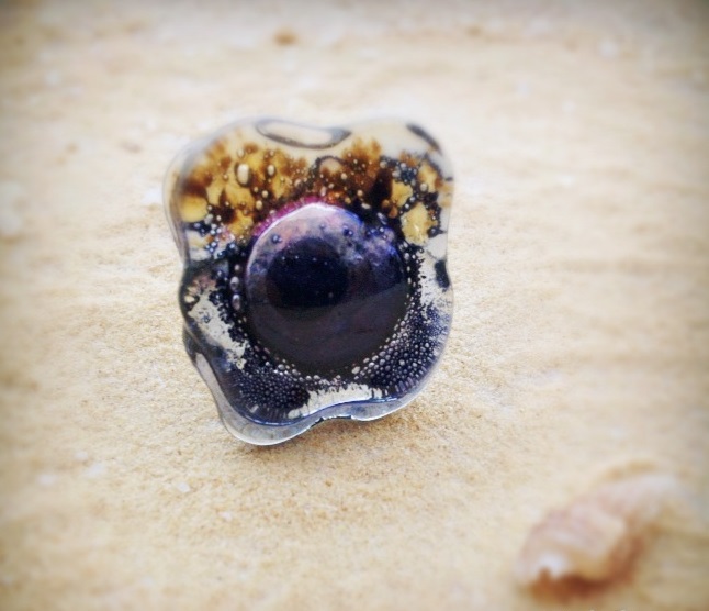 - bague style fleur violet et ambre bullé